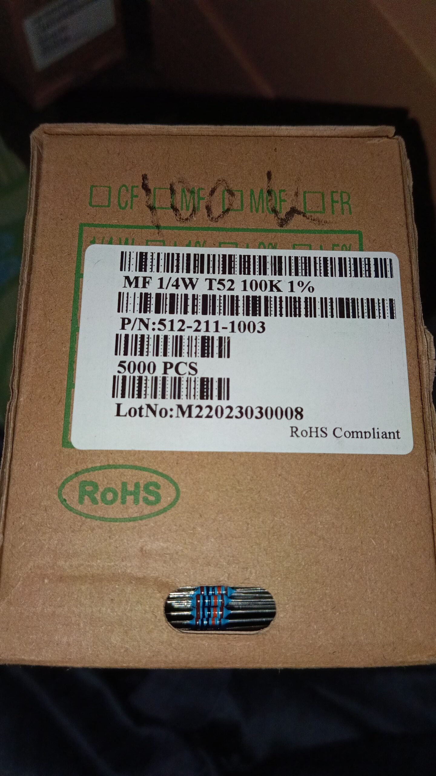 7418 resistor metal film 1/4watt 0,25watt 0.25watt 100k taiwan 1persen