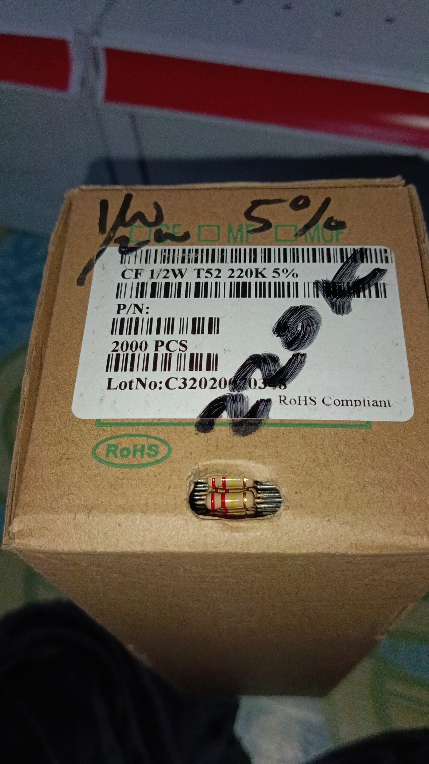 7463 resistor carbon film 1/2watt 0,5watt 0.5watt 220k taiwan 5persen