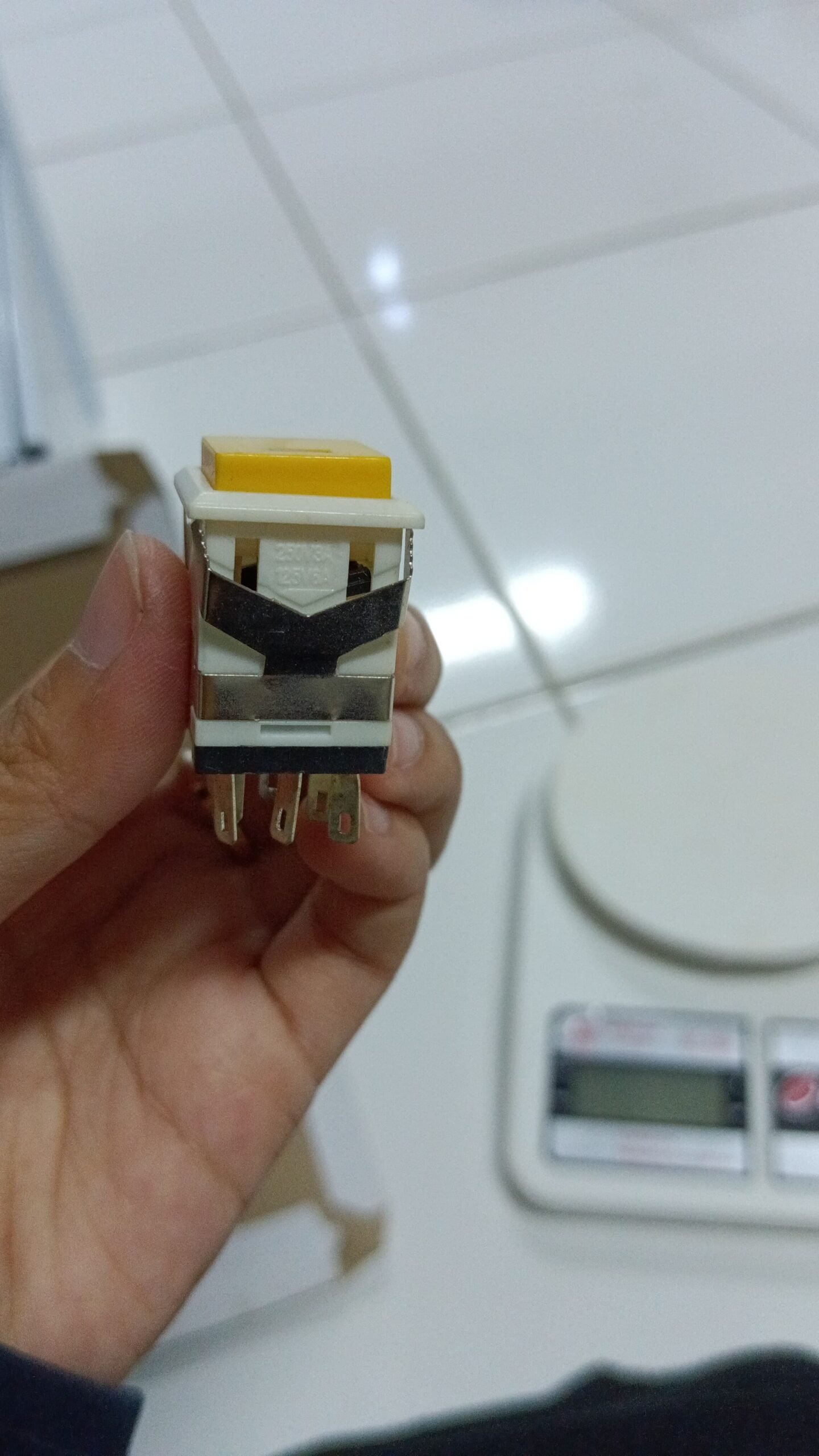 9182 push on off self locking 16×16 8p 8pin 8kaki com no nc lampu led 3v kuning