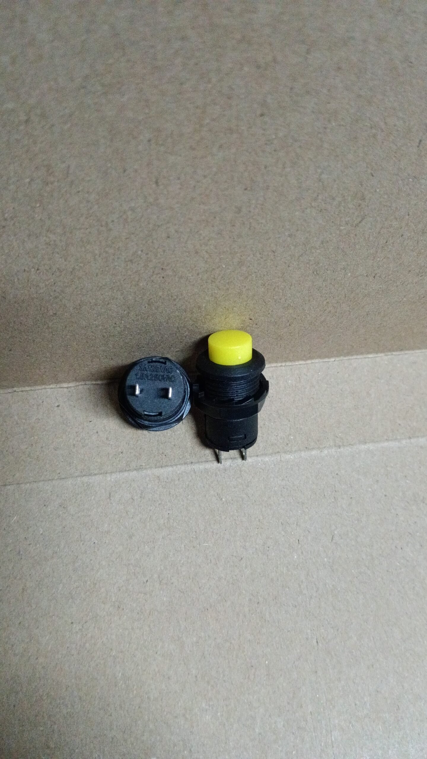 9185 saklar sakelar switch swit push on off self locking 12mm 12 mm plastik kuning